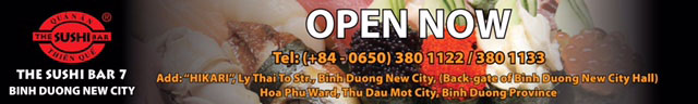 THE SUSHI BAR 7: "HIKARI" Ly Thai To St., Binh Duong New City, (Back-Gate of Binh Duong New City Hall), Hoa Phu Ward, Thu Dau Mot City, Binh Duong Province